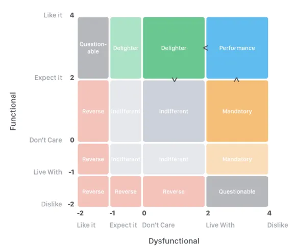 Asymmetrical Weighting Strategy: Because the product goal was adoption and growth, I weighted positive sentiment (Must-Be, Performance, Attractive) more heavily than negative sentiment (Indifferent, Reverse).