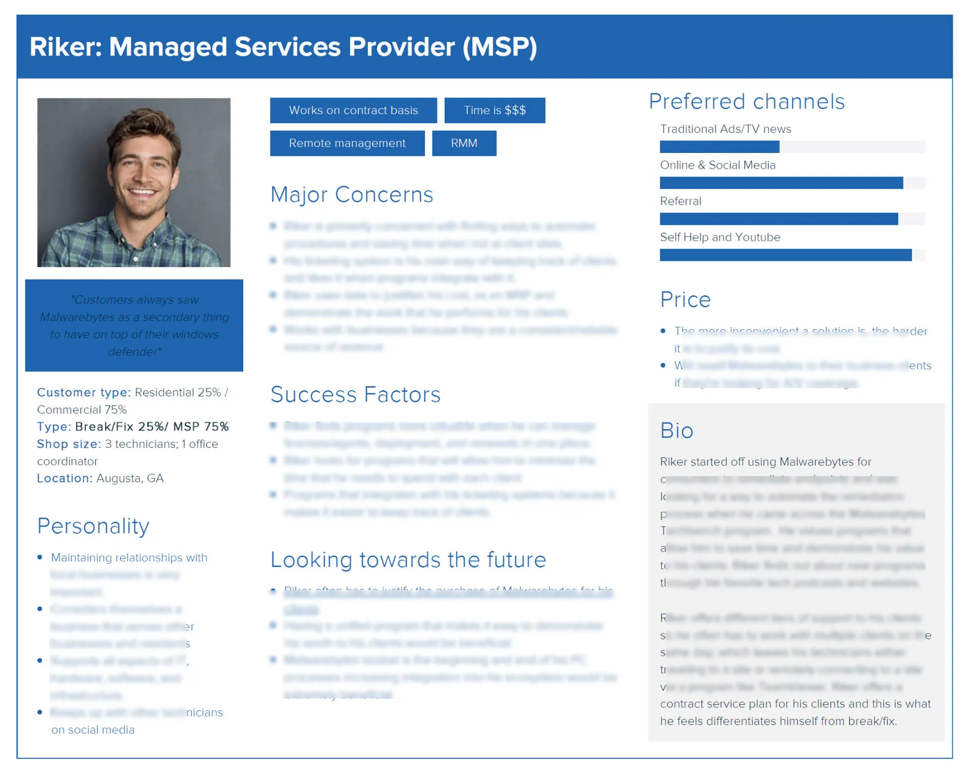 Instead of creating an entirely new persona, I chose to supplement Masab with additional insights specific to MSP companies.