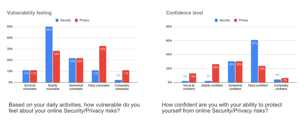 44% felt fairly or completely vulnerable about privacy risks (vs. 13% for security).