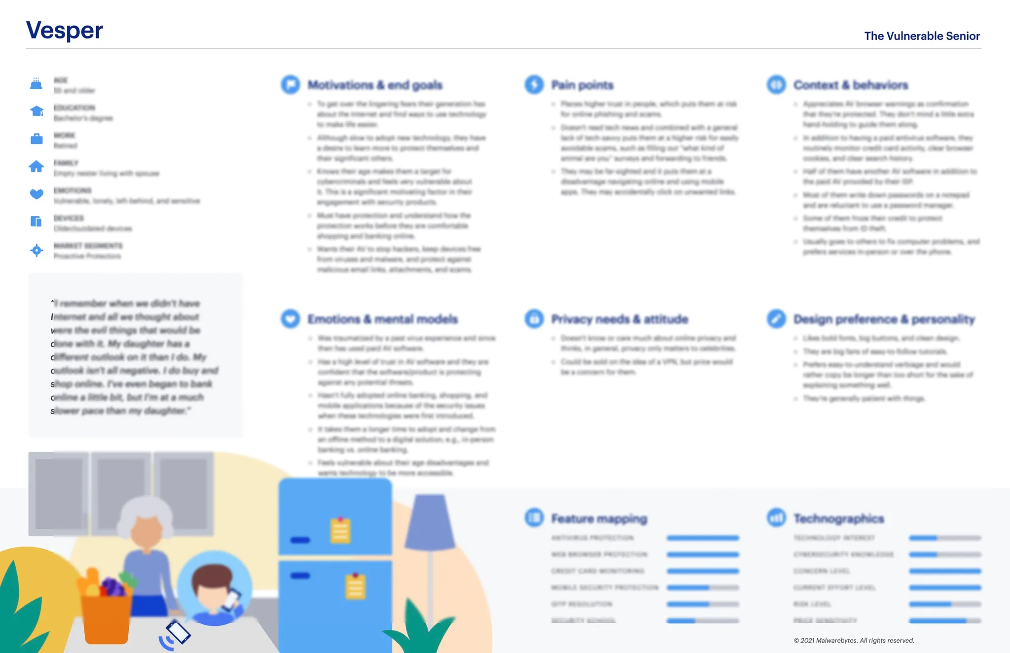 The final result was a set of five personas, each anchored by: