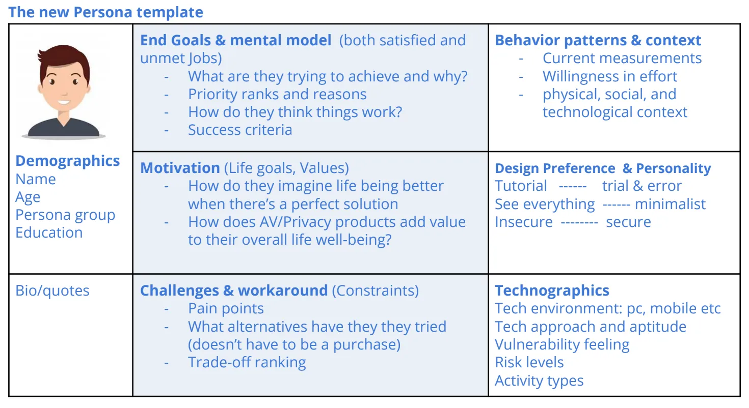 (A preview of the new persona format was shared with stakeholders to illustrate the value and usability of the updated approach.)